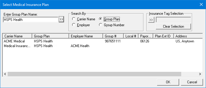 The Select Medical Insurance Plan dialog box appears.