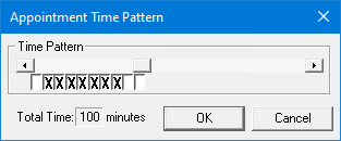To specify a time pattern, for each box below the slider bar, click the box as needed to switch between chair (blank), assistant (/), and provider (X) time.