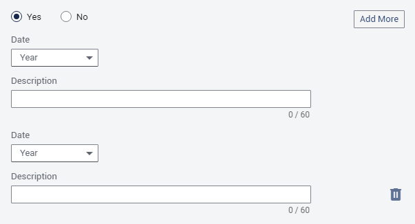 With Yes selected, a set of responses (Date and Description) is available.