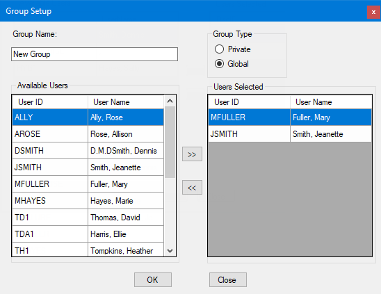 The Group Setup dialog box appears.