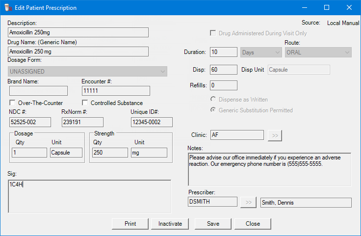 The Edit Patient Prescription dialog box appears.