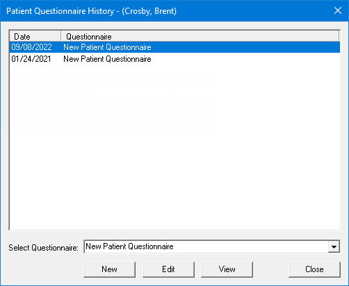 In the Patient Questionnaire History dialog box, select a questionnaire.