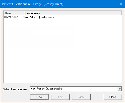 To view and then print an existing questionnaire for the patient, select the correct questionnaire, do the following: