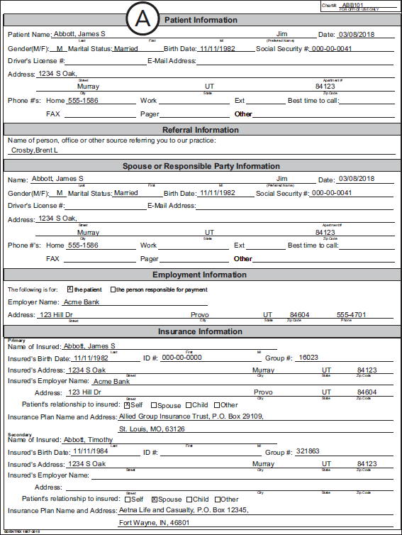 Questions Only - The patient’s name, birth date, chart number, and Social Security Number stored in Family File.