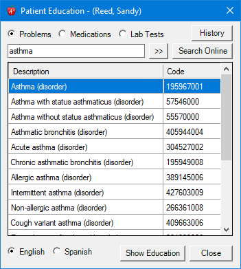 You can provide education resources to a patient according to that patient's medical alerts/problems, medications/prescriptions, allergies, and laboratory test results. This feature uses a database of patient education topics that are available on the MedlinePlus website. The content of this website is sponsored/backed by the government.