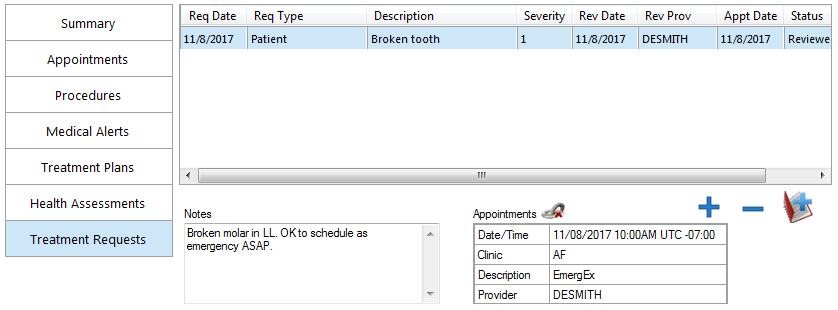 Reviewed - To mark the treatment request as having been reviewed, select the checkbox.