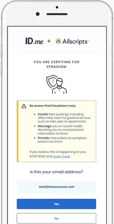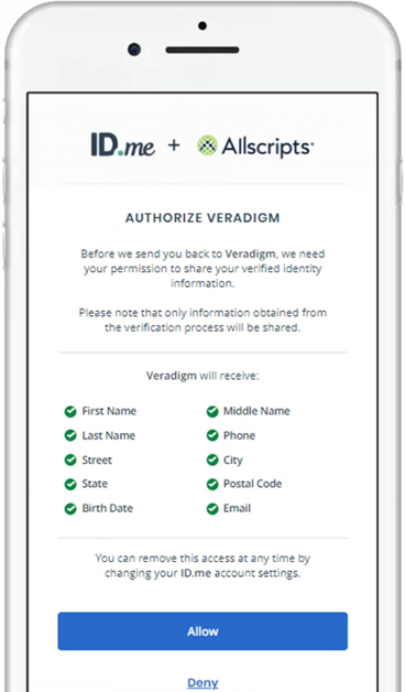 Your ID.me account is now linked to your Veradigm (formerly Allscripts) security account, and you are logged out of the Veradigm website automatically.