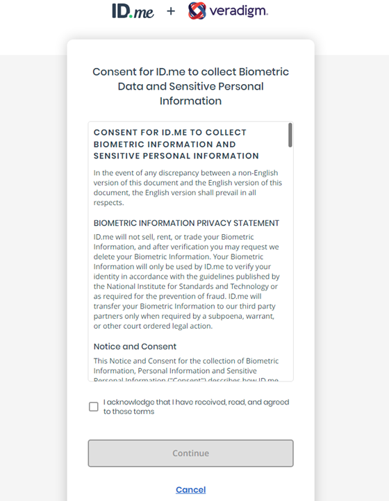 Important: To verify your identity through ID.me, you must have the following:
