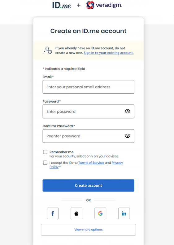 Click Create an ID.me account.