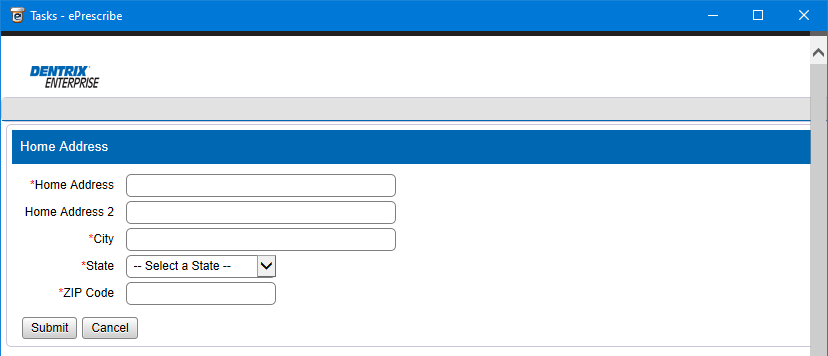 Log in to Dentrix Enterprise with a user account that has been enabled to use ePrescribe. Then, in Office Manager, click the ePrescribe Task Mode button