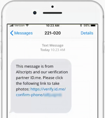 You receive a text message from ID.me with a link to take photos of your license.