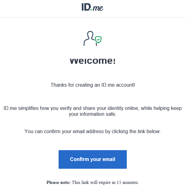 Locate the Welcome to ID.me email message in your email program's inbox, and then click Confirm your email.