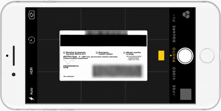 Use your device's camera to take a picture of the front of your license.