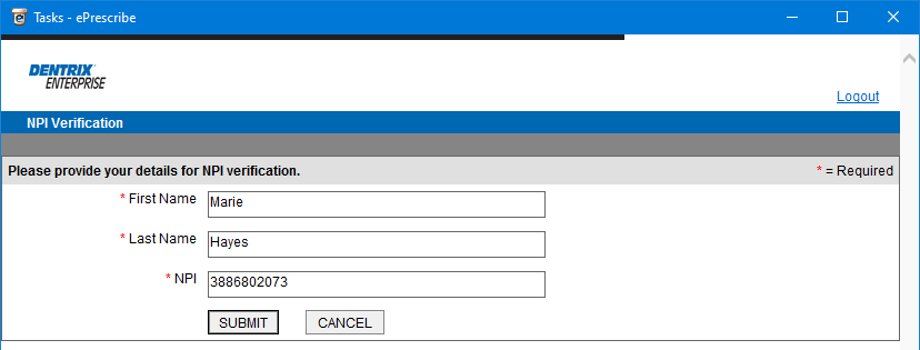 Verify that your name and NPI are correct, and then click Submit.