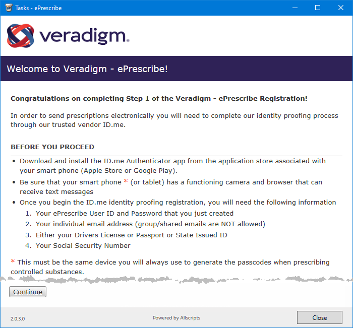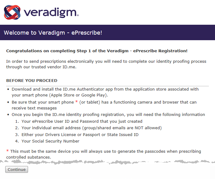 On the Veradigm website, click Continue.