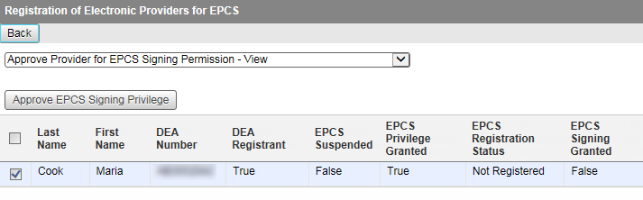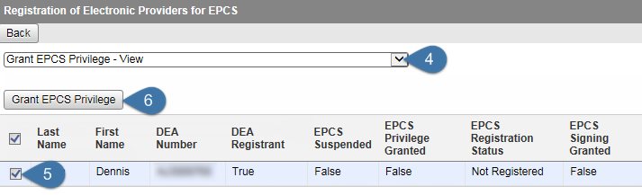 Click Grant EPCS Privilege.