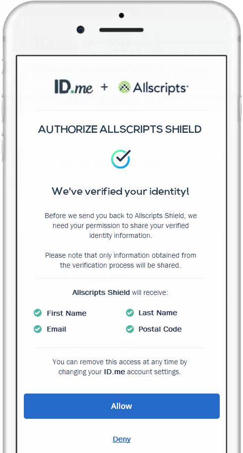Your ID.me account is now linked to your Veradigm (formerly Allscripts) security account.