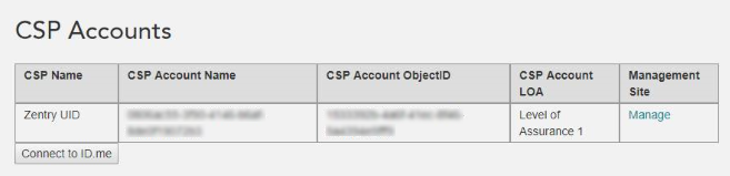 If you have an active EPCS account through Zentry (formerly Verizon), the CSP Accounts page appears; otherwise, skip to step 5.