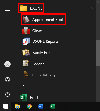 Click the Appointment Book shortcut link on the Windows Start menu.