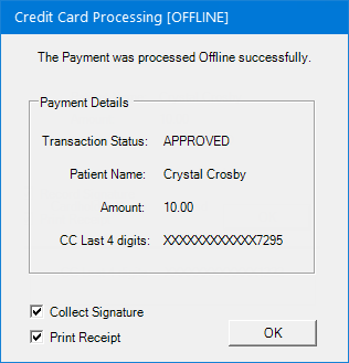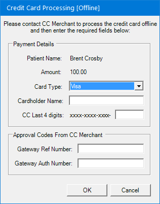 The Credit Card Processing [Offline] dialog box appears.