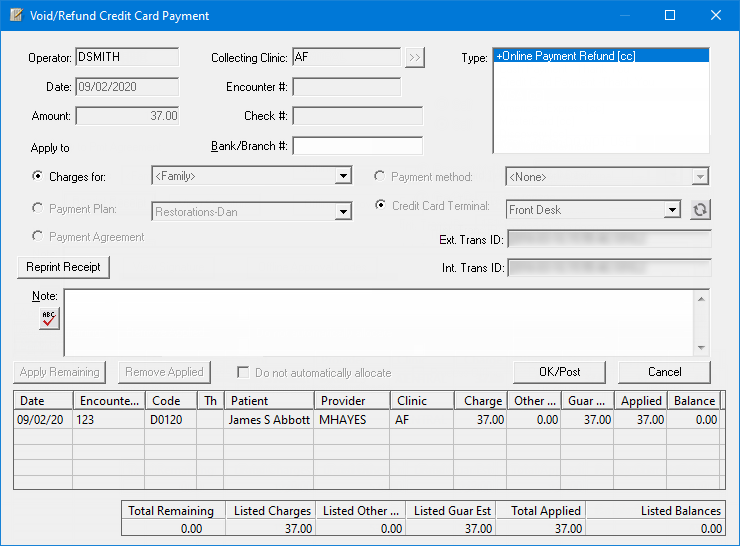 Note: Reprinting credit card receipts requires the "Guarantor Payment, Edit" security right.