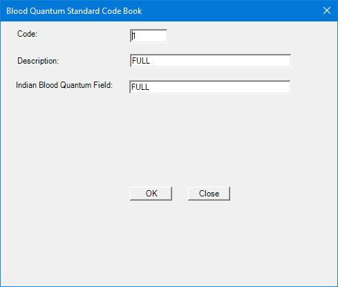 Editing Blood Quantum definitions - In the IHS Standard Codes Definitions dialog box, for the Blood Quantum (SCB) definition type/category, an Edit button now appears when a definition in that category is selected. Also, for each blood quantum definition, there is a new box: Indian Blood Quantum Field.