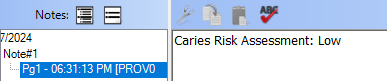 If a clinical note determines which option is selected for #6. Caries Risk on the survey, the Clinical Notes icon appears to the right of the corresponding list.
