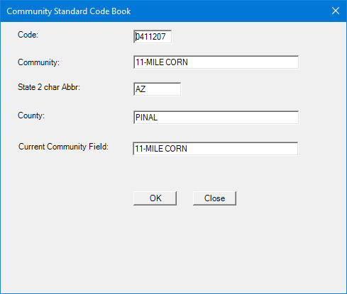 Editing Community definitions - In the IHS Standard Codes Definitions dialog box, for each Community (SCB) definition, there is a new box: Current Community Field.