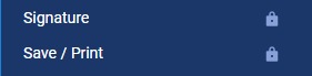 Lock icons - Lock icons appear on the Signature and Save/Print tabs on the left to indicate that the assessment is incomplete:
