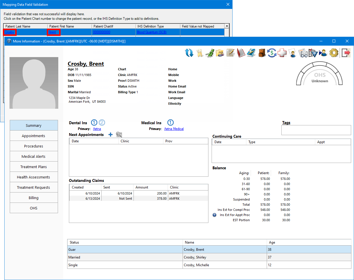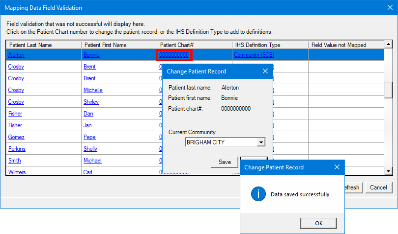 As in previous versions, in the Mapping Data Field Validation dialog box of the NPIRS data extraction utility, you can click a patient's chart number (which is a link) in the Patient Chart # column to modify the patient's additional information as needed. However, be aware of the following changes: