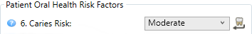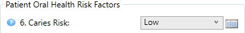 When you are completing an oral health status survey for a patient, an option for #6. Caries Risk is selected automatically according to the following criteria: