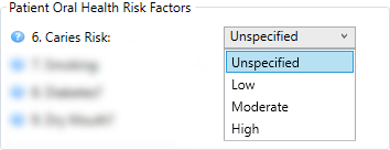 If an applicable procedure code or clinical note does not exist within the past six months, the Unspecified option is selected by default for #6. Caries Risk on the survey.