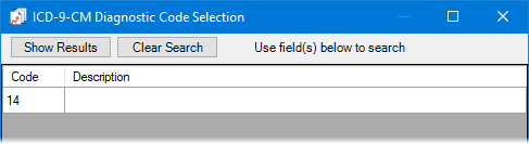 Click Show Results to view a list of matching ICD-9-CM codes.