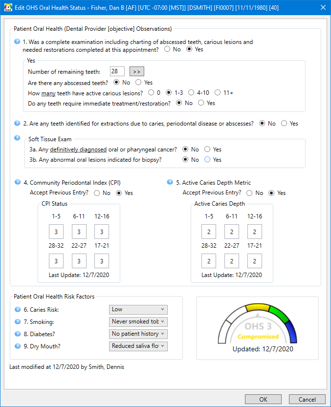 Click OK (if allowed). Whether or not you have made changes to the survey, the Last Exam Date for the survey is updated to today's date.