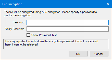 With this checkbox clear, the file will be encrypted with AES encryption, and a password that you specify will be required to open the file.