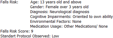 Falls Risk details and score.