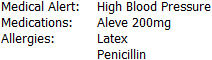 For problems - "Medical Alert: " appears without any text next to it.