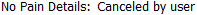 If pain details were skipped - The following text appears in the note: "No Pain Details: Canceled by [user]"