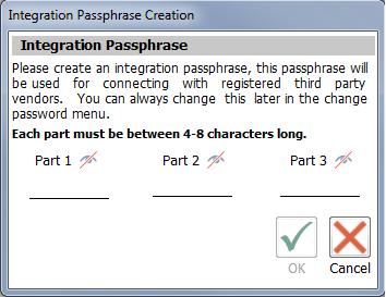 The first time you open OMSVision after installing, the Integration Passphrase dialog box appears.