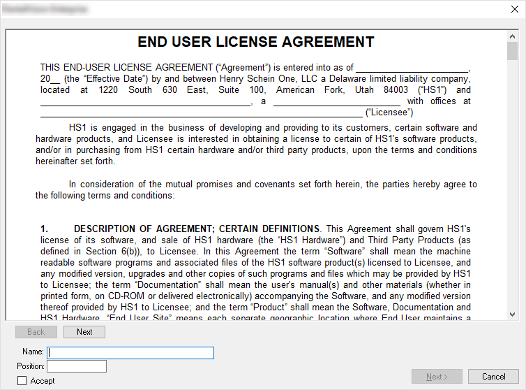 Read the End User License Agreement (EULA). Use the Back and Next buttons to navigate between the pages of the EULA.