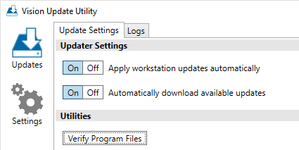 Verify Program Files - When you click this option, the Vision Update Utility verifies that the necessary OMSVision program files are properly installed. (Verifying this can be helpful before upgrading to a new software version.)