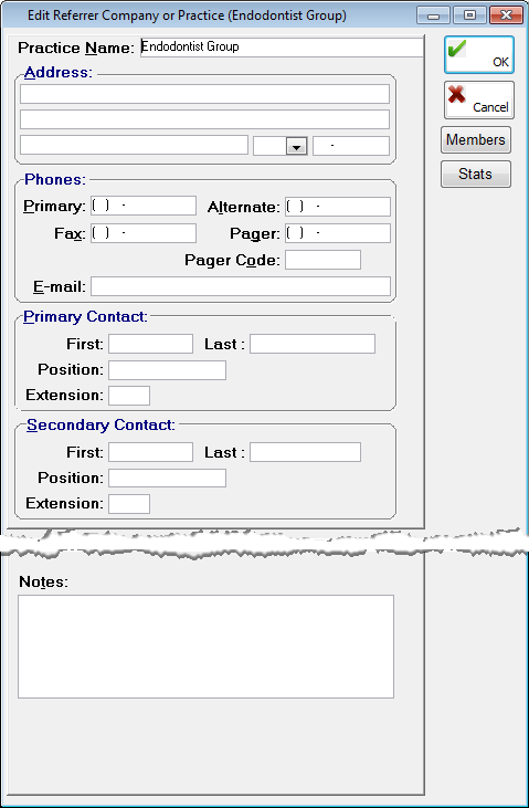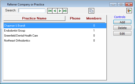 You can keep a record of groups of referrers that belong to the same practice or company. You can add referrers to referrer companies or practices as members. You can add and edit the referrer company or practice as needed.