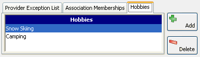 Hobbies - To add a hobby to the referrer, click Add to select and paste in a hobby. To remove a hobby from the list, select the hobby, and then click Delete.