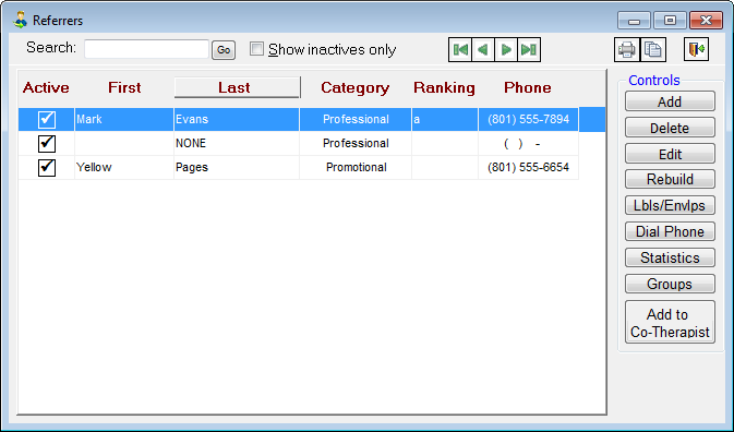 Tip: If the provider you want to access is inactive, select the Show inactives only check box to view only inactive referrers.