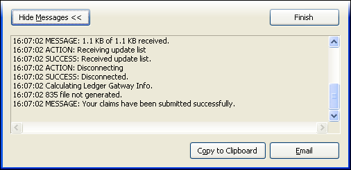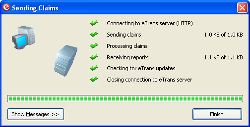 After the transmission process is complete, click Finish to exit the Sending Claims dialog box.