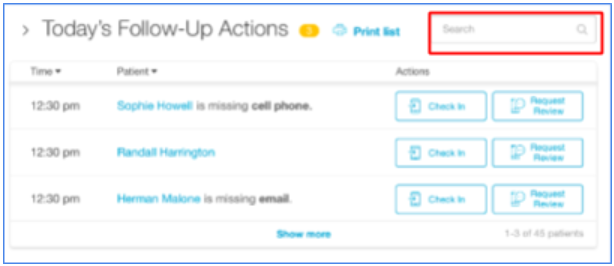 Tip: You can also search for a specific patient and send them a Check In link using the search box: